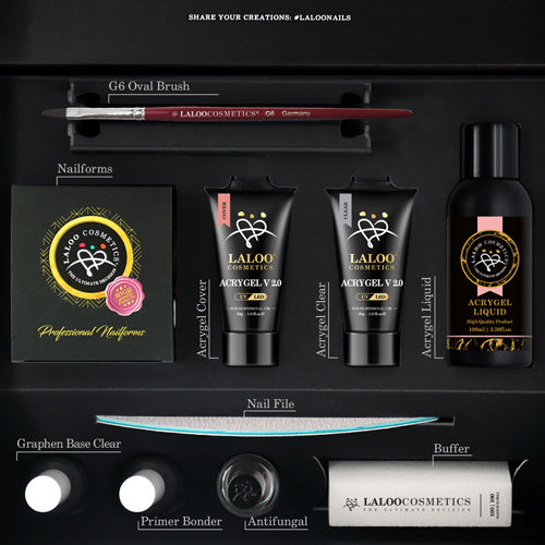 Ένα ιδανικό kit που καλύπτει πλήρως τις ανάγκες του τεχνίτη για μια τοποθέτηση acrygel .Τα προϊόντα περιλαμβάνονται σε ένα υπέροχο LUXURY BOX απολυτά ασφαλή!