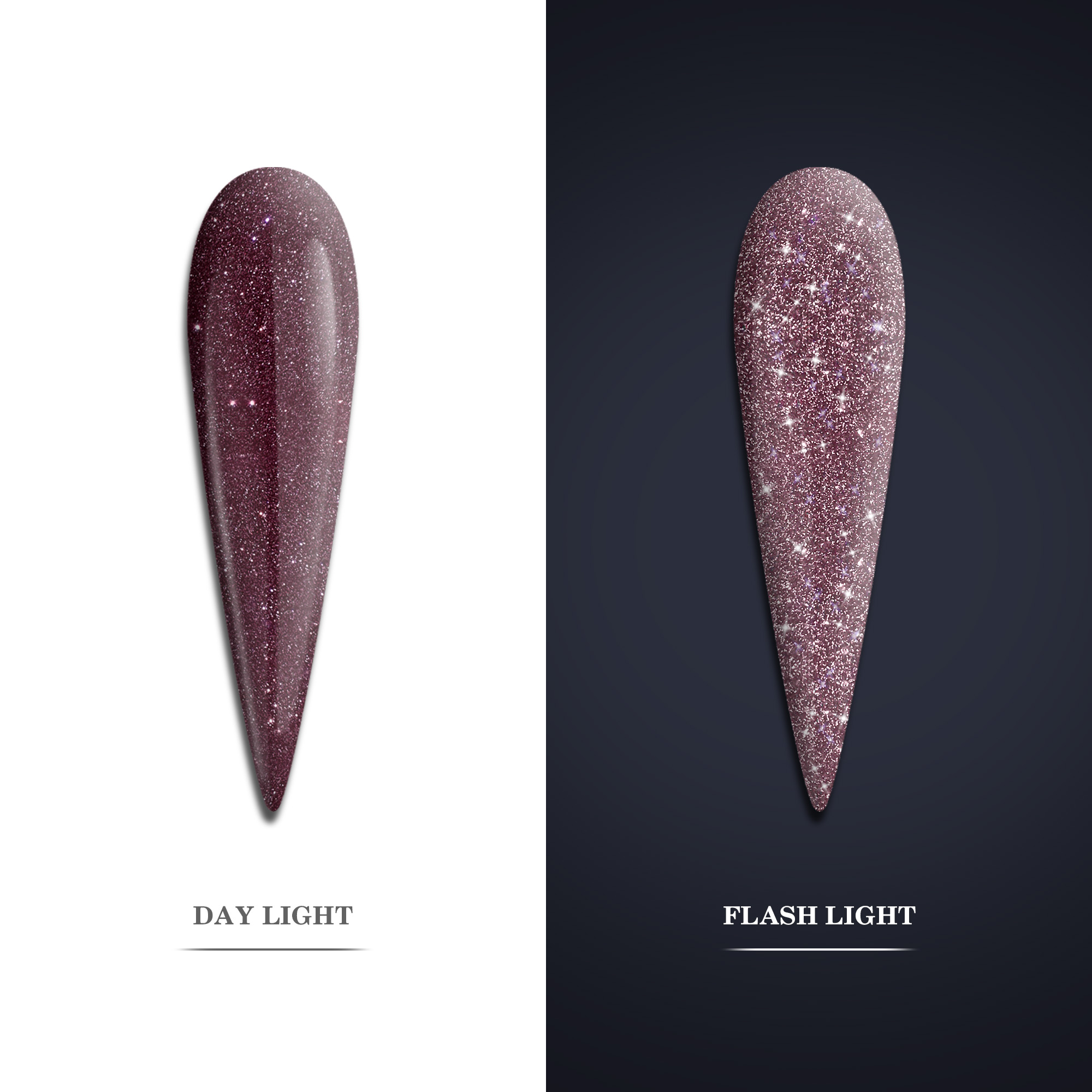 Κάνε μοναδική την εμφάνιση σου διαλέγοντας μία από τις έξι αποχρώσεις! Άναψε το flash και δώσε μια διαφορετική λάμψη στο μανικιούρ σου! Οι αποχρώσεις που είναι διαθέσιμα είναι ασημί, μωβ, ανοιχτό μωβ με ιριδίζον glitter, μαύρο, μελιτζανί και ροζ απαλό.