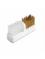 To Double Clean Brush είναι το εργαλείο που πρέπει να έχει κάθε τεχνίτης. Έχει δύο είδη τρίχας για τον καθαρισμό των φρεζών πριν την απολύμανση / αποστείρωση. Η πλαστική τρίχα είναι κατάλληλη για να καθαρίζετε τις διαμαντόφρεζες ,ενώ οι μεταλλικές ίνες για να καθαρίζετε τις φρέζες καρβιδίου αλλά και κεραμικές .Οι λεπτές ίνες, εισχωρούν στις εγκοπές και καθαρίζουν από τα υπολείμματα των υλικών, παρατείνοντας έτσι το χρόνο ζωής τους. Διαθέτει αυτοκόλλητο για να το τοποθετήσετε στον πάγκο εργασίας σας.