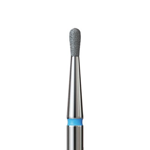 Διαμαντόφρεζα σε σχήμα οβάλ. Με μπλε χρώμα κρίκου (μέτριας τραχύτητας). Έχει ιδιαίτερο σχήμα και είναι κατάλληλη για το πρώτο στάδιο του μανικιούρ. Σπρώχνει πίσω τα επωνύχια και παράλληλα καθαρίζει τις μεμβράνες που είναι κολλημένες στην πλάκα του νυχιού. Είναι ιδανικό για την απομάκρυνση των σκληρύνσεων στις πλαϊνές πτυχές του νυχιού.
