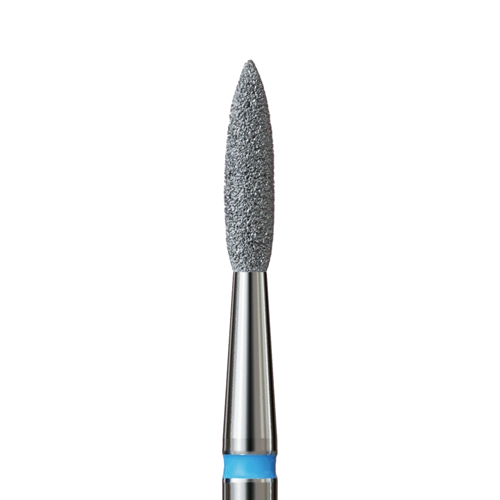 Διαμαντόφρεζα με μακρύ κωνικό σχήμα (φλόγα). Μέτριας τραχύτητας με μπλε κρίκο. Κατάλληλη για ανασήκωση και κόψιμο πιο σκληρών επωνυχίων, καθώς και για την απομάκρυνση του νεκρού δέρματος πάνω από το νύχι.