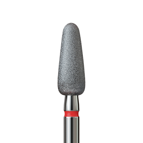 Διαμαντόφρεζα με μακρύ κωνικό σχήμα και στρογγυλεμένη μύτη. Μαλακής τραχύτητας με κόκκινο κρίκο. Το μέγεθός του επιτρέπει το κόψιμο και τη λείανση επωνυχίων, καθώς και του σκληρού δέρματος γύρω από το νύχι.