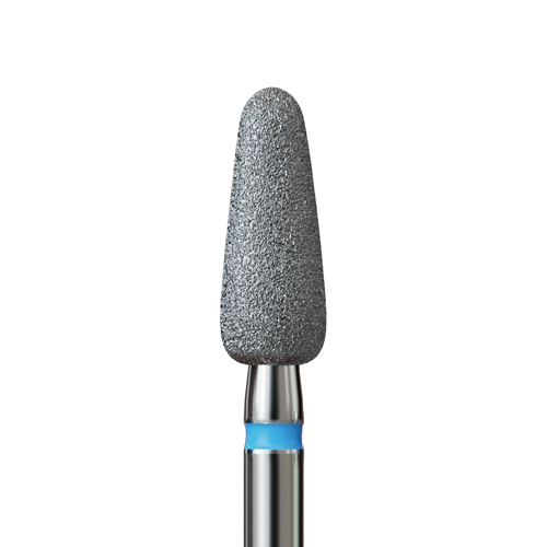 Διαμαντόφρεζα με μακρύ κωνικό σχήμα και στρογγυλεμένη μύτη. Μέτριας τραχύτητας με μπλε κρίκο. Το μέγεθός του επιτρέπει το κόψιμο και τη λείανση επωνυχίων, καθώς και του σκληρού δέρματος γύρω από το νύχι.