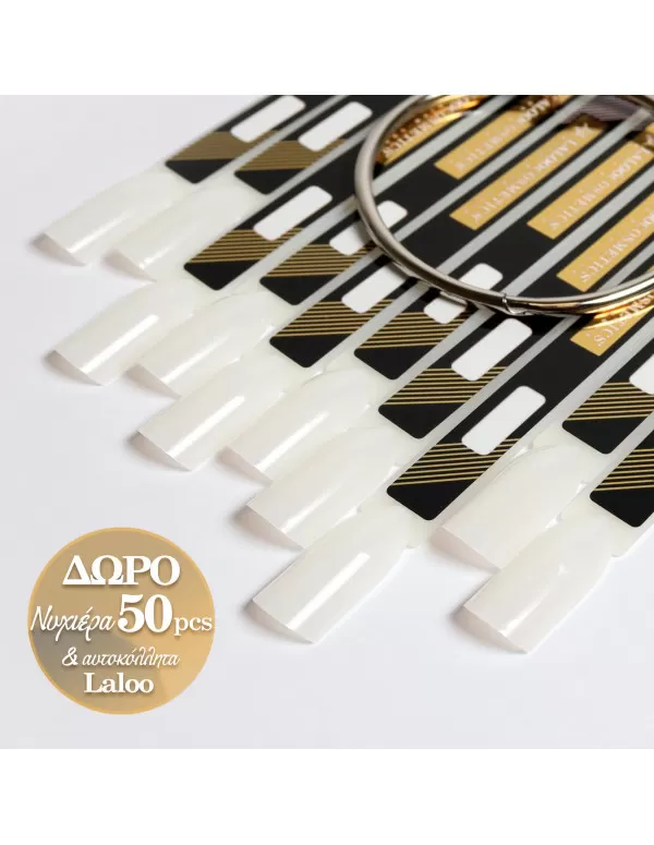 Με κάθε αγορά ενός σταντ παλετών Luxury Plexi Salon Stand, δίνεται δώρο 1 σετ tips 50τμχ. συν αυτοκόλλητα ετικετάκια Laloo Cosmetics.