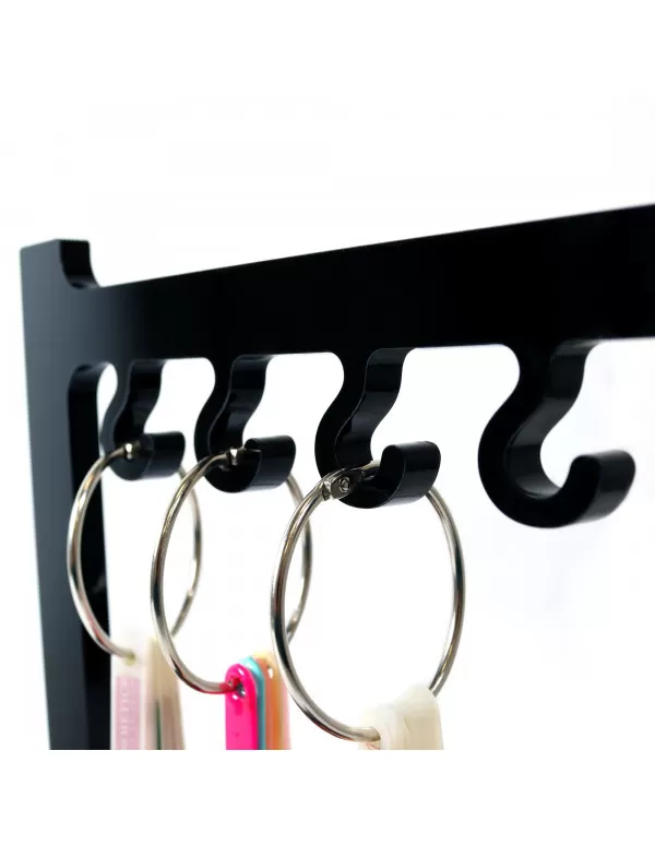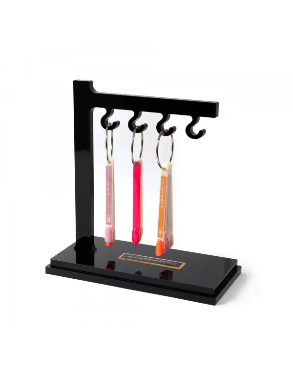 Διαθέτει τέσσερις γάντζους για να κρεμάσετε τα δείγματα από τις tips που έχετε ετοιμάσει, προσφέροντας στους πελάτες σας καλύτερη οπτική επαφή και επιλογή χρωμάτων. Αυτό σας επιτρέπει να εξοικονομείτε πολύτιμο χρόνο για την εξυπηρέτησή τους.