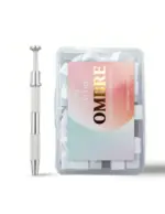 Στη συσκευασία θα βρείτε επίσης, το ειδικό μεταλλικό εργαλείο εφαρμογής, σχεδιασμένο σε μορφή στυλό: με ένα απαλό πάτημα στο πίσω μέρος, εμφανίζεται η λεπτή «δαγκάνα», επιτρέποντας την ασφαλή και ακριβή τοποθέτηση του σφουγγαριού. Είναι ελαφρύ, πρακτικό και προσφέρει σταθερό κράτημα, ενώ χαρίζει απόλυτο έλεγχο στην εφαρμογή και το blending.
