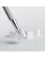 Στη συσκευασία θα βρείτε επίσης, το ειδικό μεταλλικό εργαλείο εφαρμογής, σχεδιασμένο σε μορφή στυλό: με ένα απαλό πάτημα στο πίσω μέρος, εμφανίζεται η λεπτή «δαγκάνα», επιτρέποντας την ασφαλή και ακριβή τοποθέτηση του σφουγγαριού. Είναι ελαφρύ, πρακτικό και προσφέρει σταθερό κράτημα, ενώ χαρίζει απόλυτο έλεγχο στην εφαρμογή και το blending.