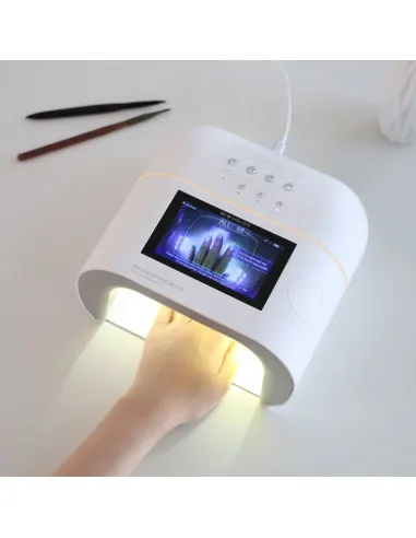 Η μοναδική LED οθόνη μέσα στη λάμπα, διαβάζει με ακρίβεια το μέγεθος της ονυχαίας πλάκας για στοχευμένο πολυμερισμό και δίνει τη δυνατότητα στον πελάτη να παρακολουθεί τα νύχια του καθ’ όλη τη διάρκεια της διαδικασίας.