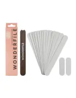 Starter Kit ξύλινης λίμας με ανταλλακτικά αυτοκόλλητα. Τα ανταλλακτικά αυτοκόλλητα WONDERFILE έχουν ασφαλή στρογγυλεμένη άκρη με αποτέλεσμα να μην τραυματίζουν το δέρμα. Ο πιο υγιεινός και ασφαλής τρόπος να ολοκληρώσεις το μανικιούρ ή το πεντικιούρ σου. Δεν θρυμματίζονται, ούτε “μπουκώνουν” με αποτέλεσμα να μη δυσκολεύουν τον τεχνίτη κατά την εργασία. Κατά την αφαίρεση του αυτοκόλλητου δεν υπάρχει υπόλειμμα κόλλας στη βάση της λίμας.