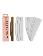 Starter Kit ξύλινης λίμας με ανταλλακτικά αυτοκόλλητα. Τα ανταλλακτικά αυτοκόλλητα WONDERFILE έχουν ασφαλή στρογγυλεμένη άκρη με αποτέλεσμα να μην τραυματίζουν το δέρμα. Ο πιο υγιεινός και ασφαλής τρόπος να ολοκληρώσεις το μανικιούρ ή το πεντικιούρ σου. Δεν θρυμματίζονται, ούτε “μπουκώνουν” με αποτέλεσμα να μη δυσκολεύουν τον τεχνίτη κατά την εργασία. Κατά την αφαίρεση του αυτοκόλλητου δεν υπάρχει υπόλειμμα κόλλας στη βάση της λίμας.
